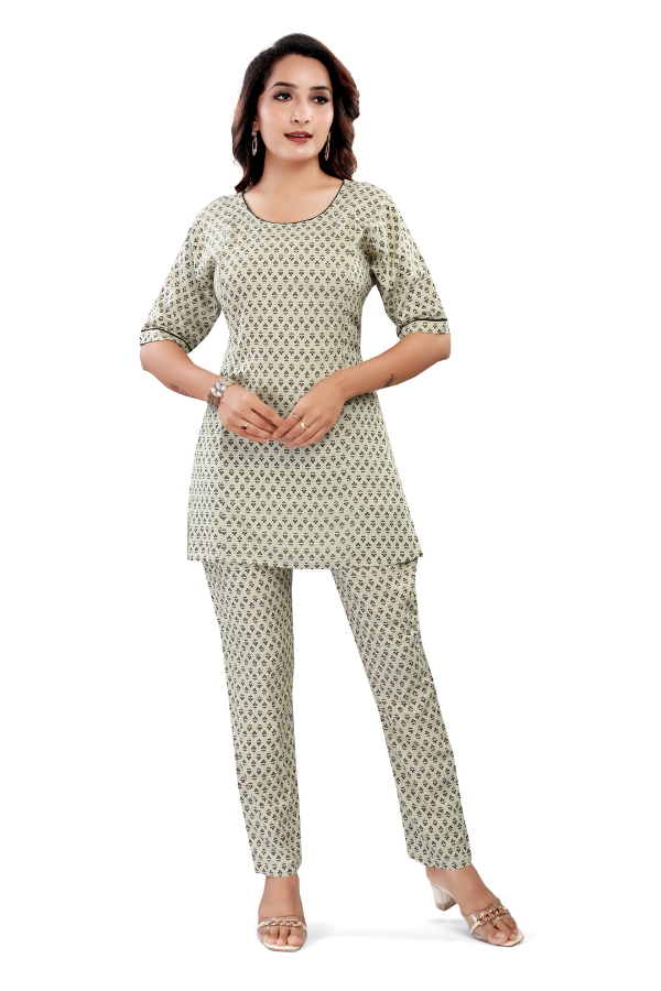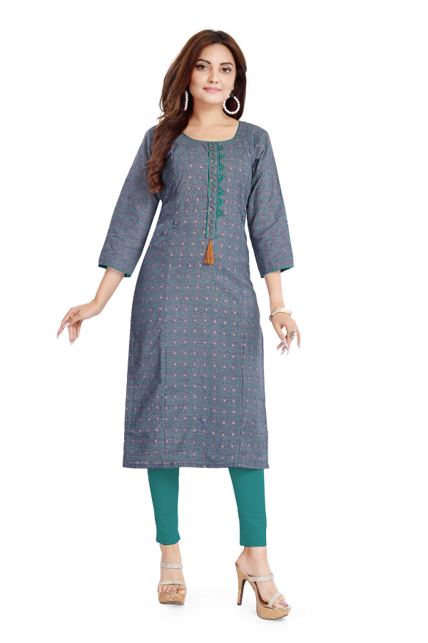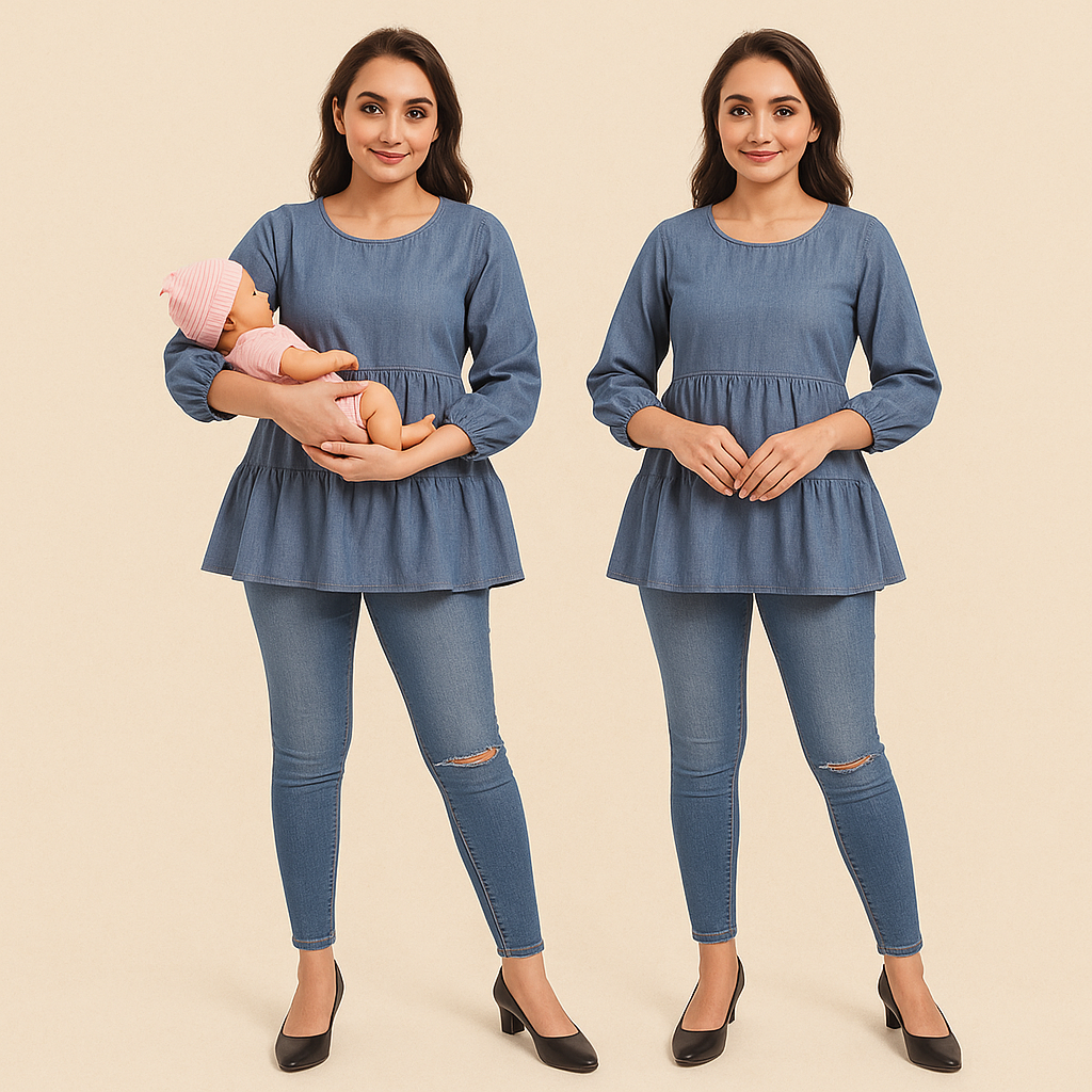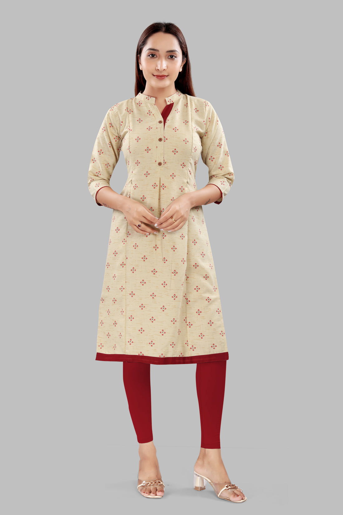 Elegant everyday kurti. I love the mandarin neck and side slits. Nursing access is discreet — quick zips on both sides.
