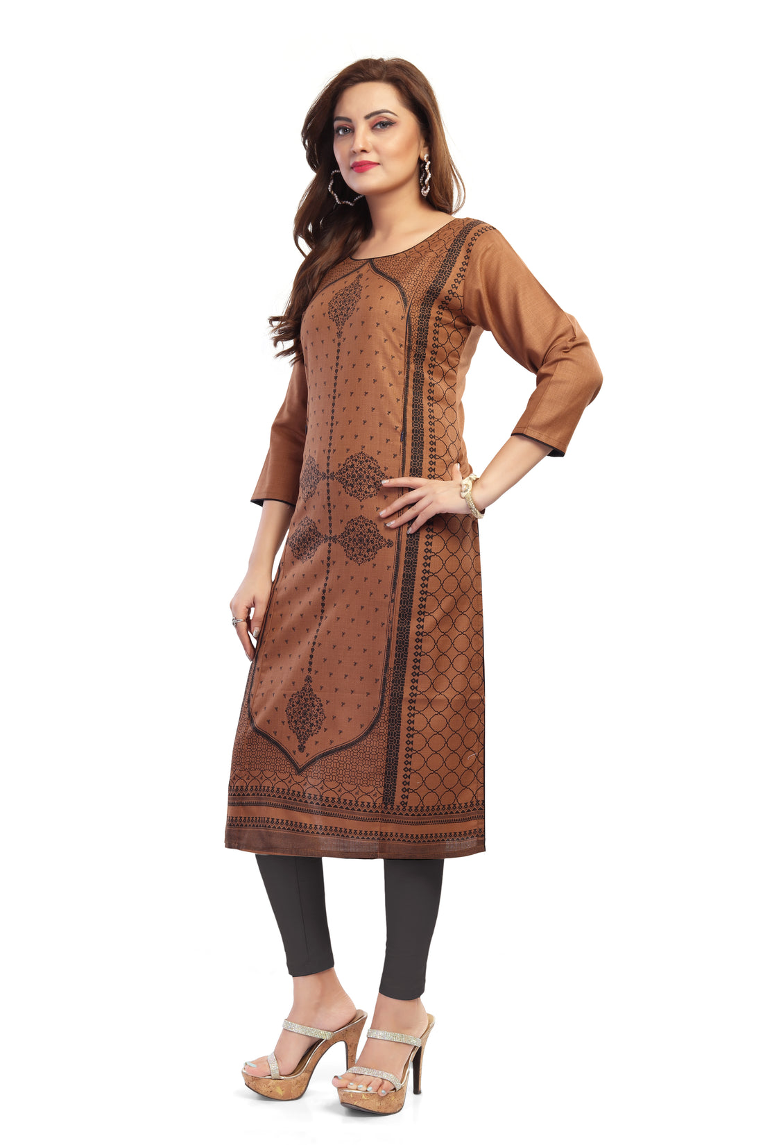 Straight Maternity & Nursing Kurti — Coffee Brown Print