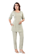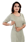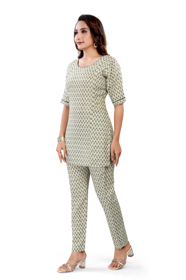 - Beige kurti with micro black prints for a subtle aesthetic.
