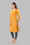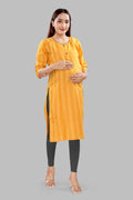 Bright and breezy for every trimester. This straight-fit kurti in sunny yellow is crafted from a breathable cotton-rayon blend and features dual 9" concealed side zips for quick, discreet nursing. Comfortable from pregnancy to postpartum—perfect for work, errands and everyday wear.
