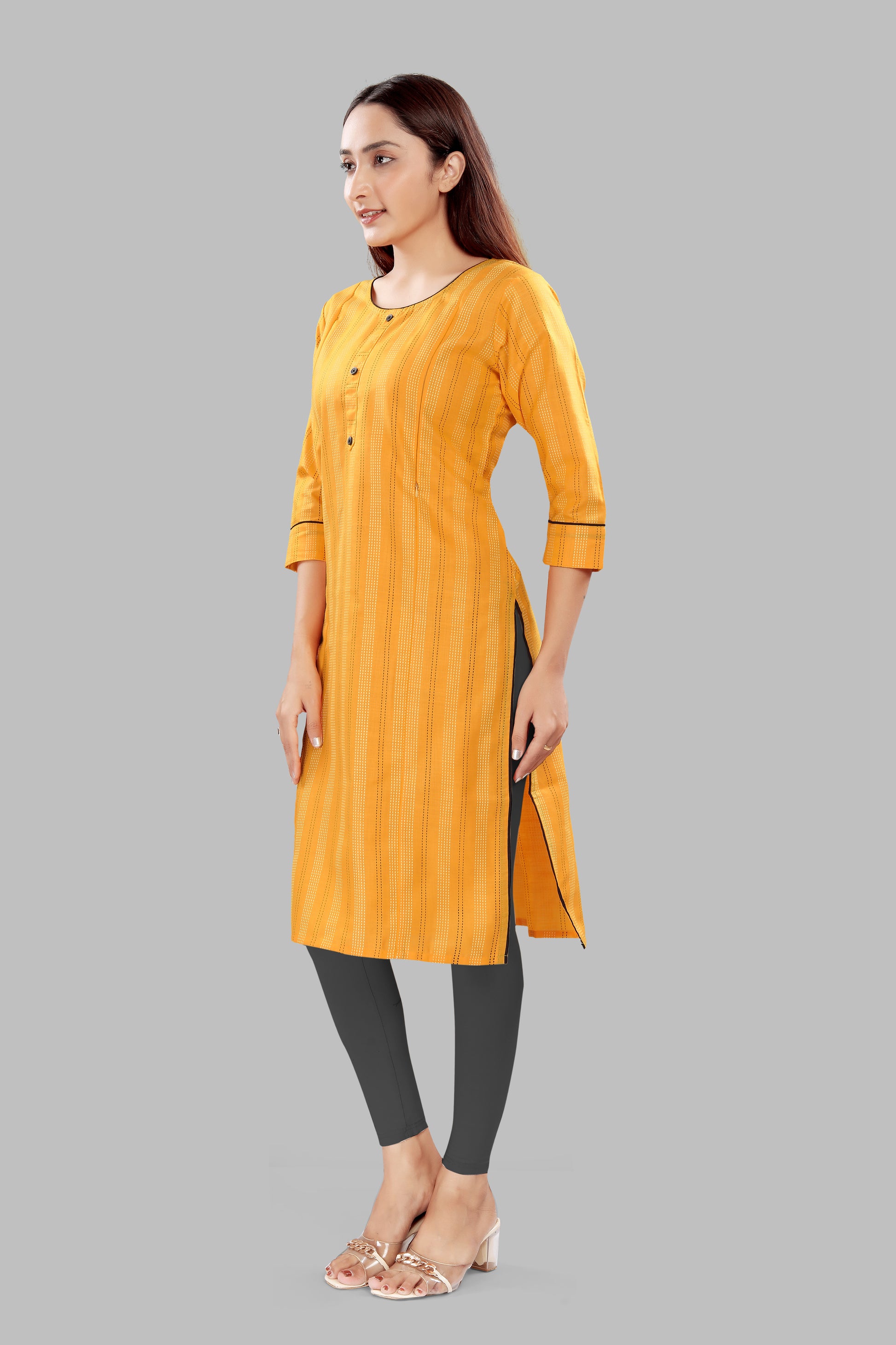 Absolutely. The subtle print and elegant trims make it versatile—perfect for office wear, daily outings, or casual gatherings. Pair with leggings, trousers, or palazzos.