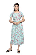 - Soft light-blue base with all-over floral print — fresh and feminine.