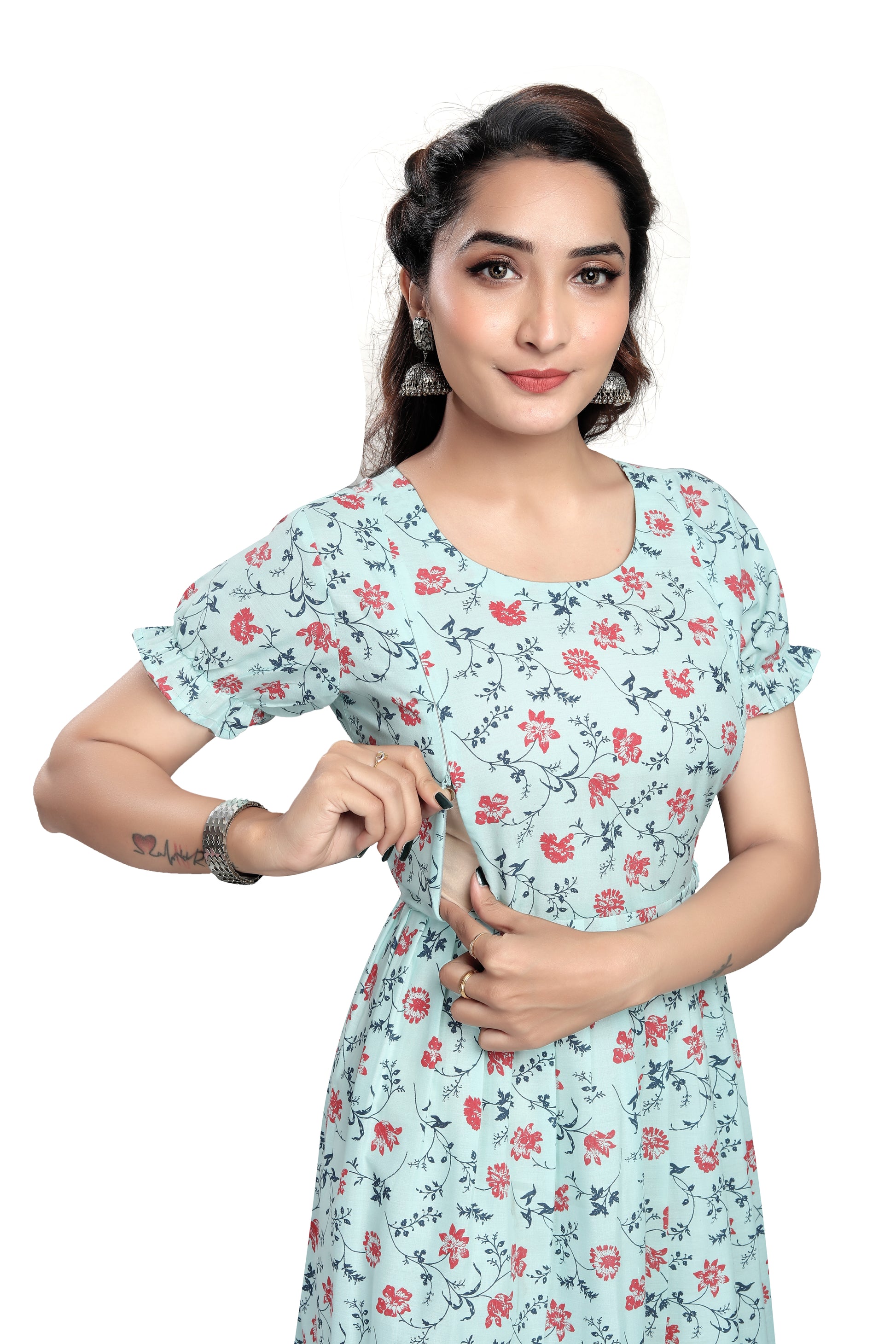 - Two concealed side zips for easy, modest nursing access.