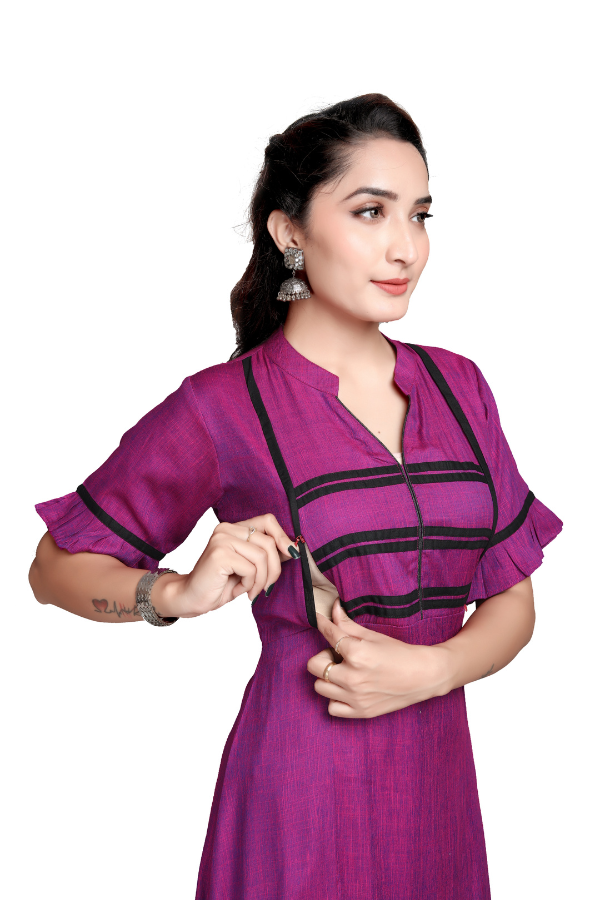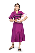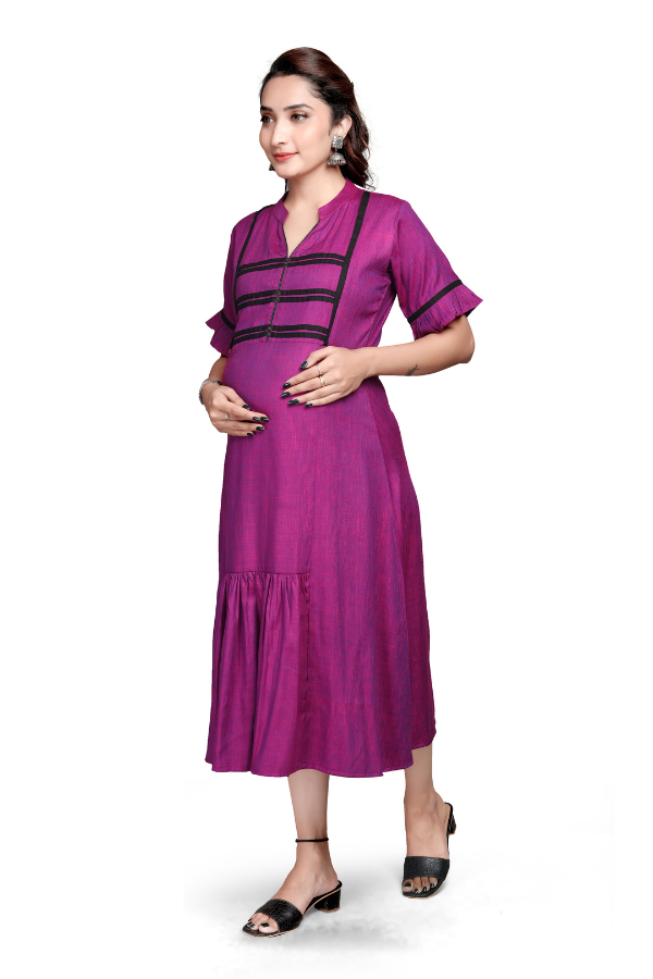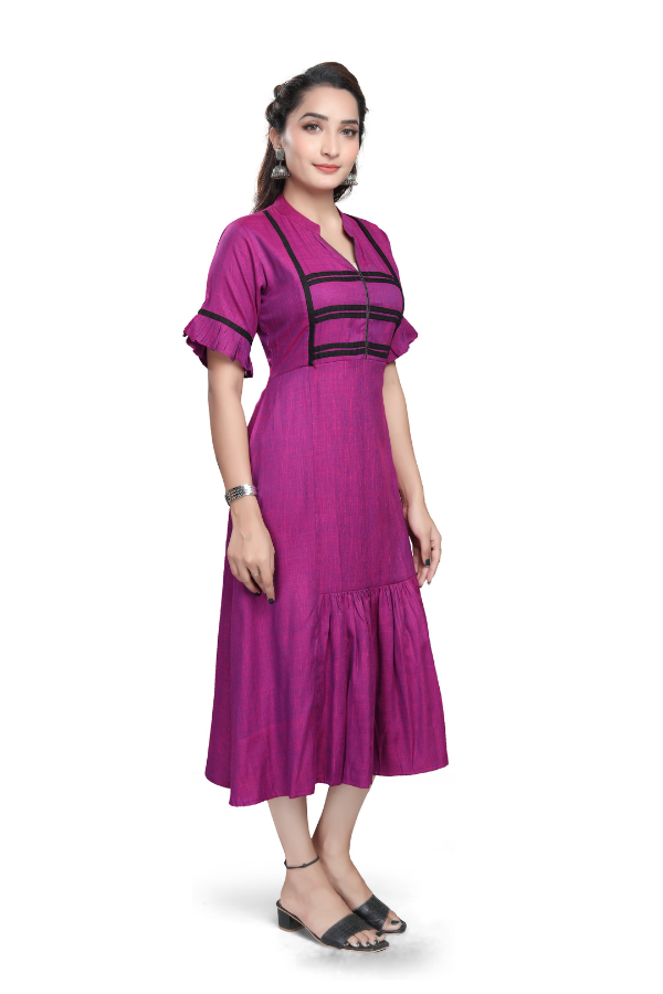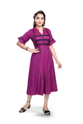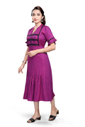 - Comfortable A-line midi with gathered flounce for easy movement.