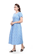 - Relaxed A-line midi with gentle gathers for easy movement.