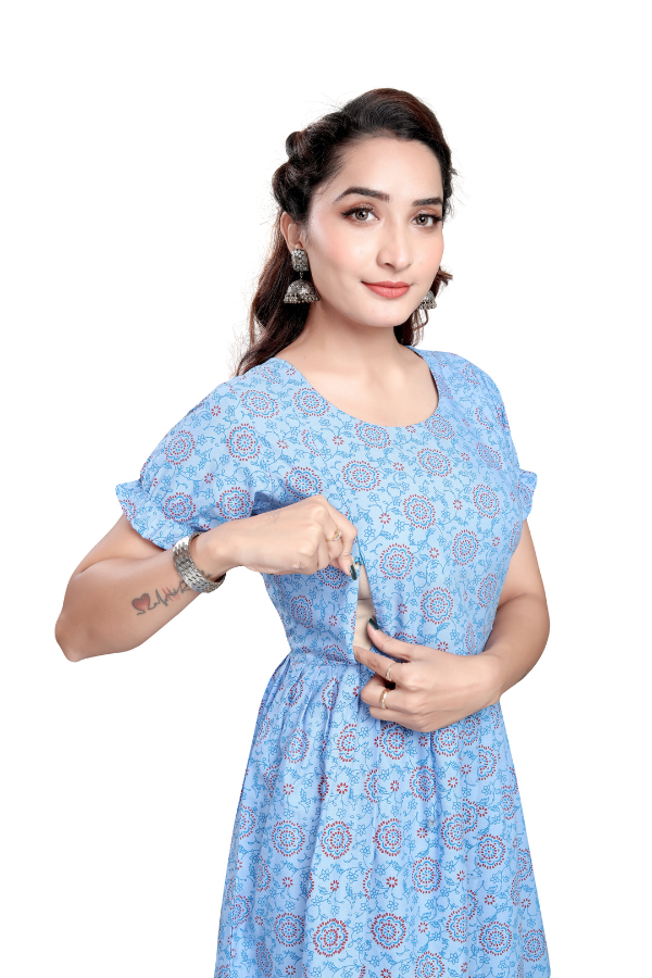 - Round neck with short ruffled sleeves for a soft, feminine look.