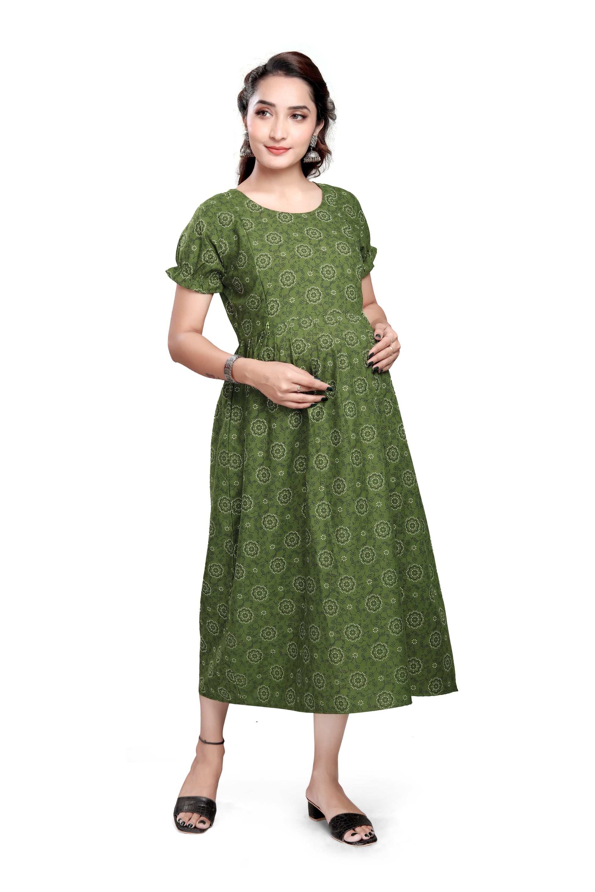 - Empire waistline for bump-friendly comfort and flowy drape.
