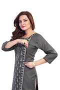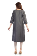 - Straight silhouette with round neckline & 3/4 sleeves for effortless polish.