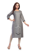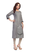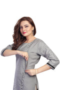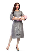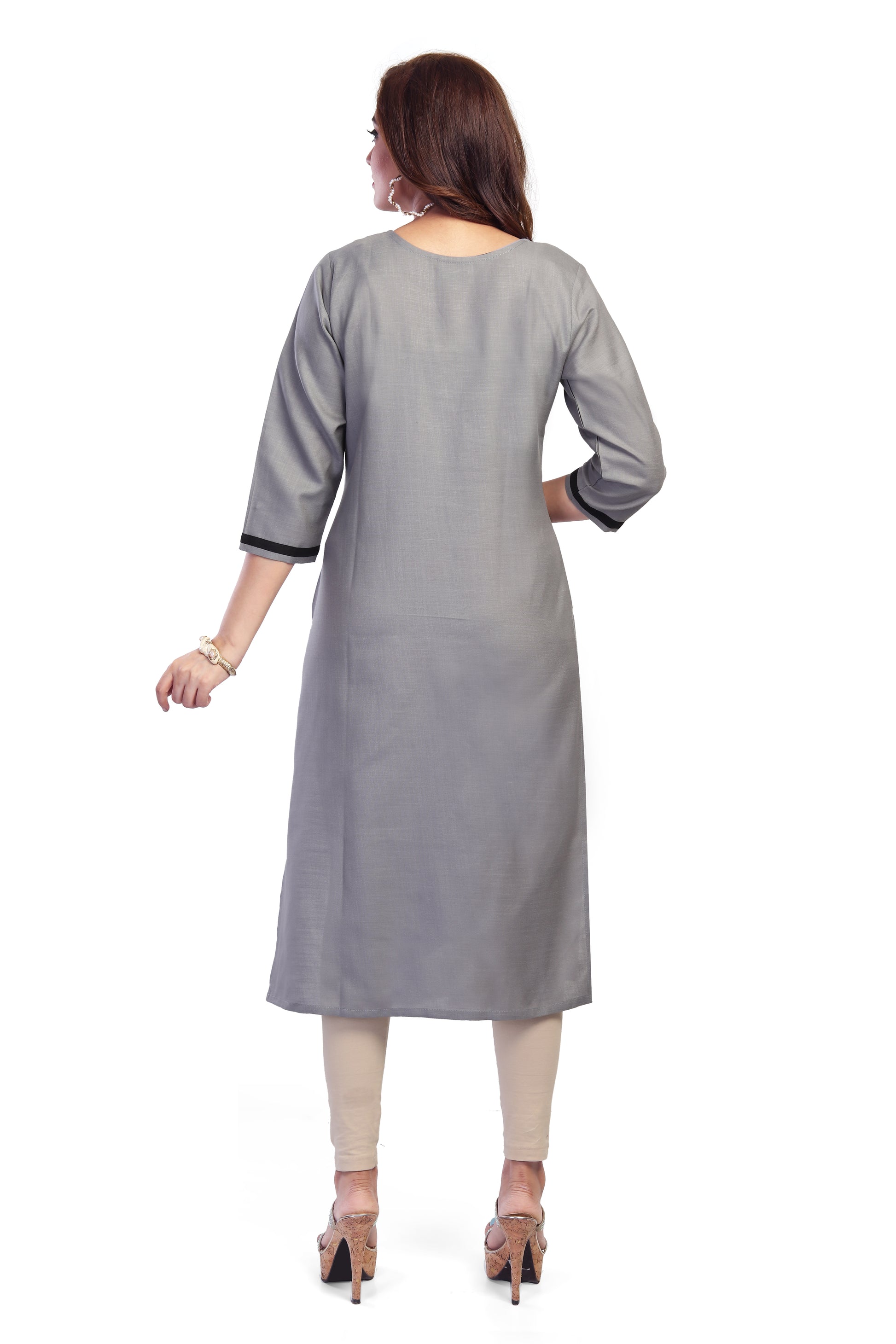 - Elegant smoke grey base with intricate front panel and neat black cuff piping.