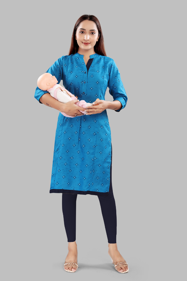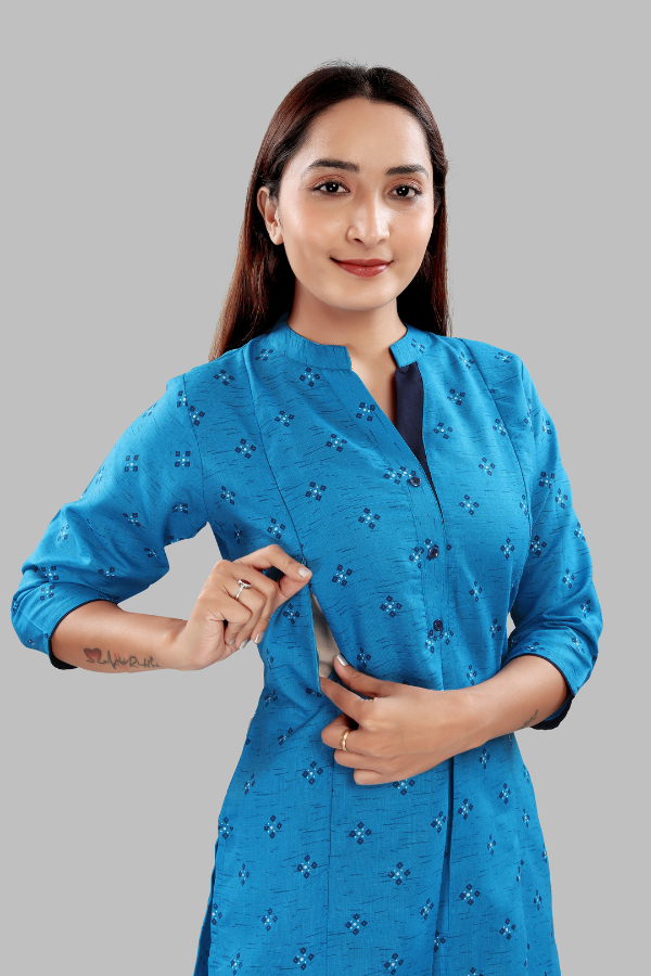 - Two vertical concealed zippers (approx. 9") along princess seams for easy, modest nursing access.