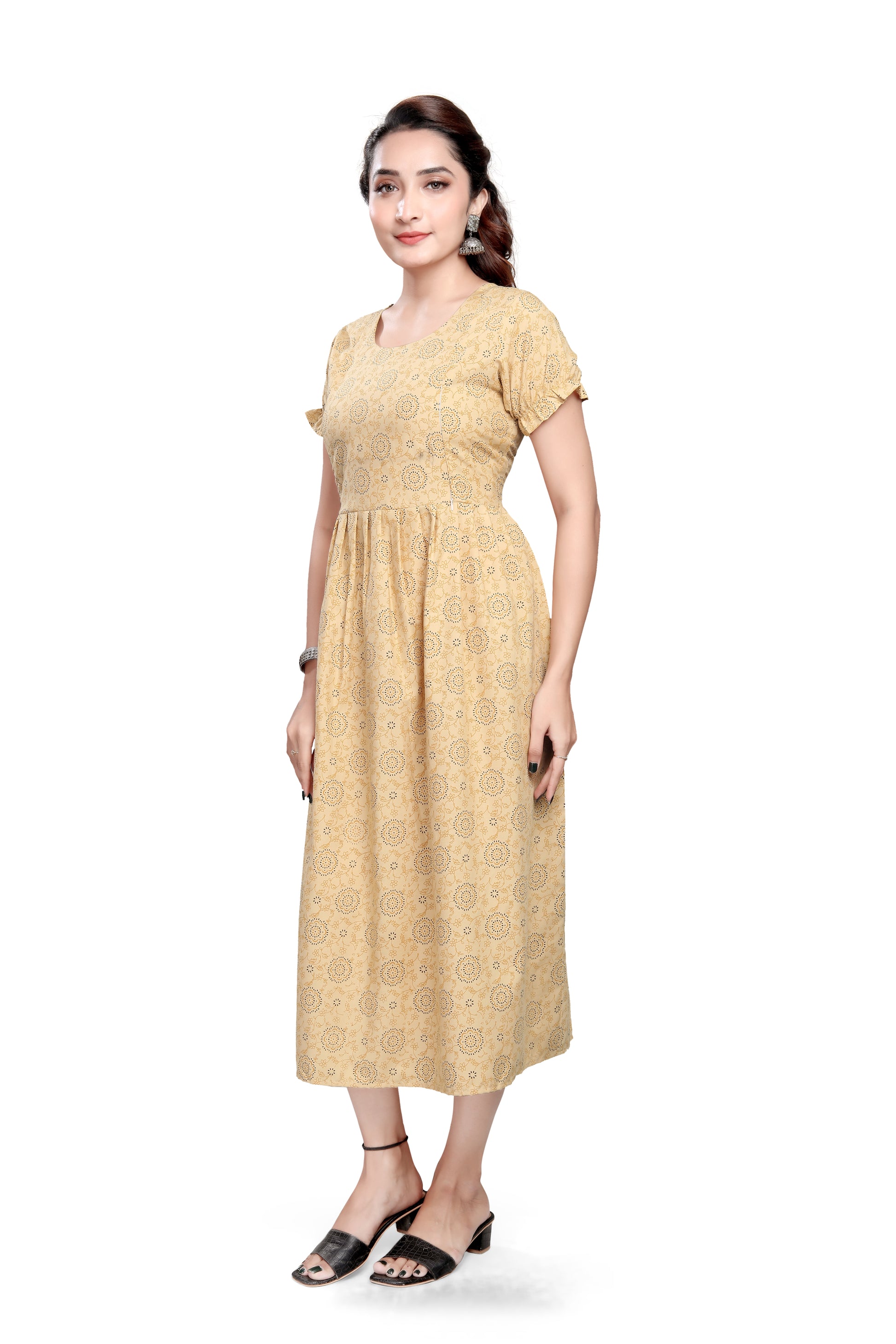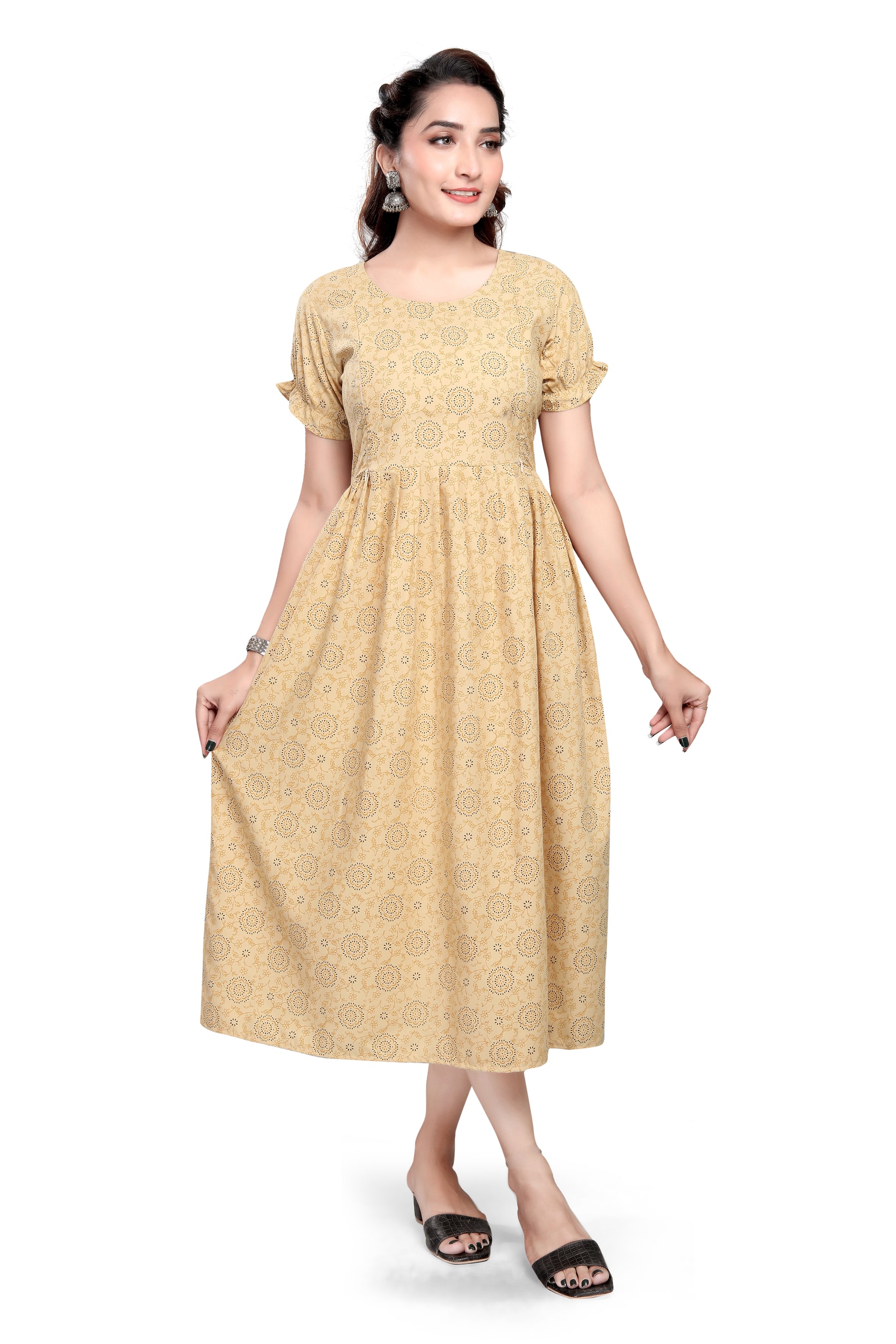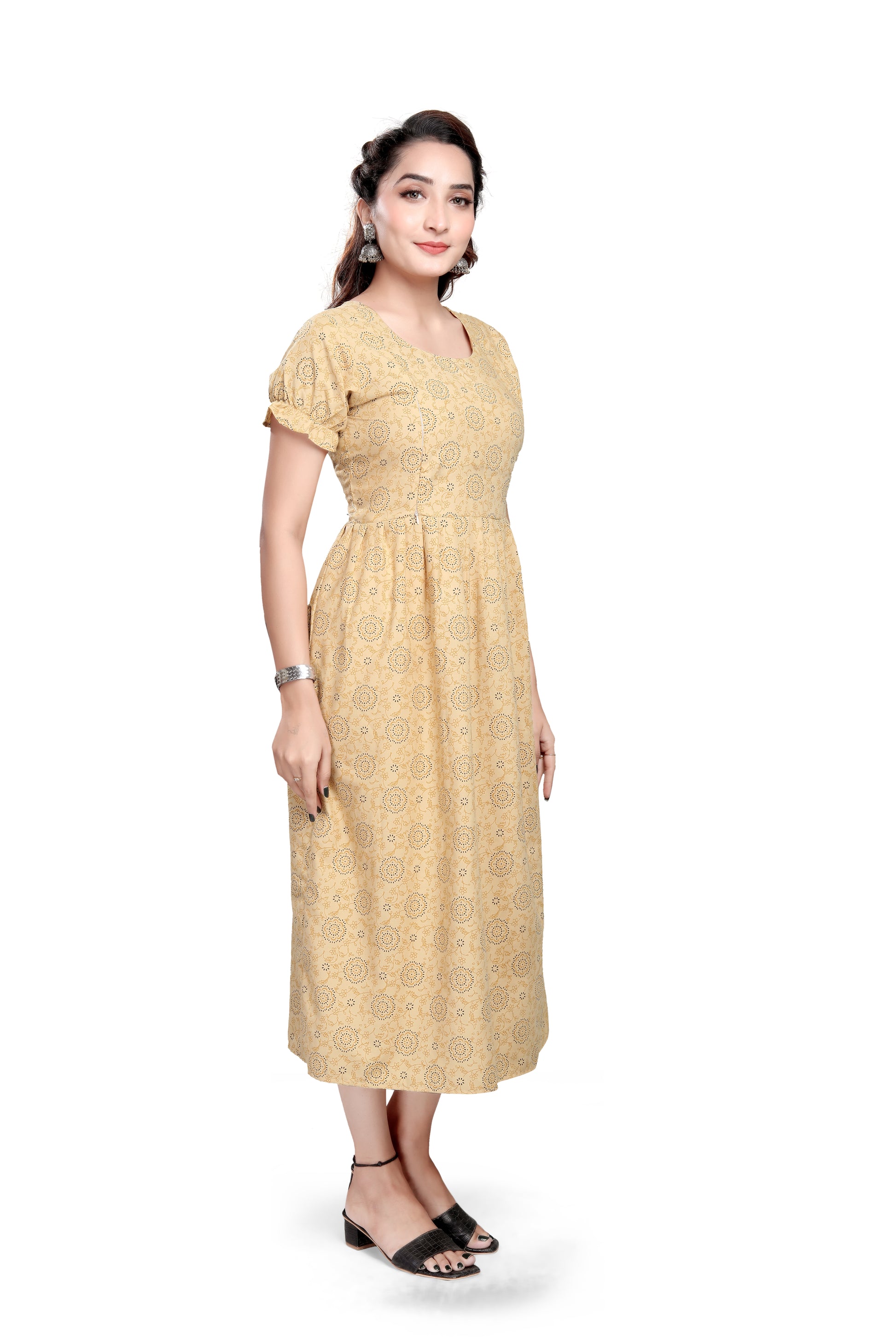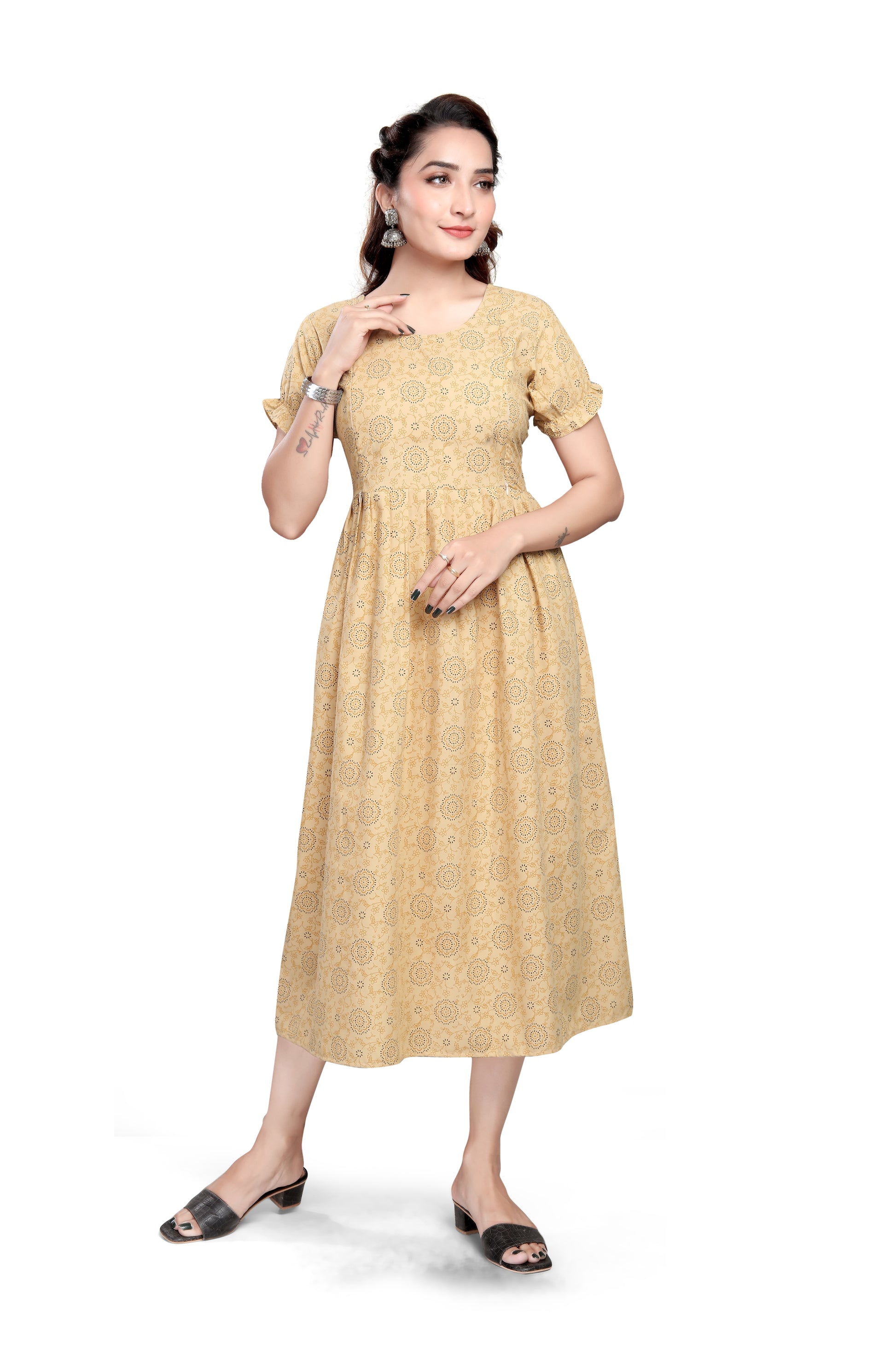 Yes. The straight-fit design with side slits and breathable cotton-blend fabric ensures comfort through all trimesters. It also works well for postpartum wear.