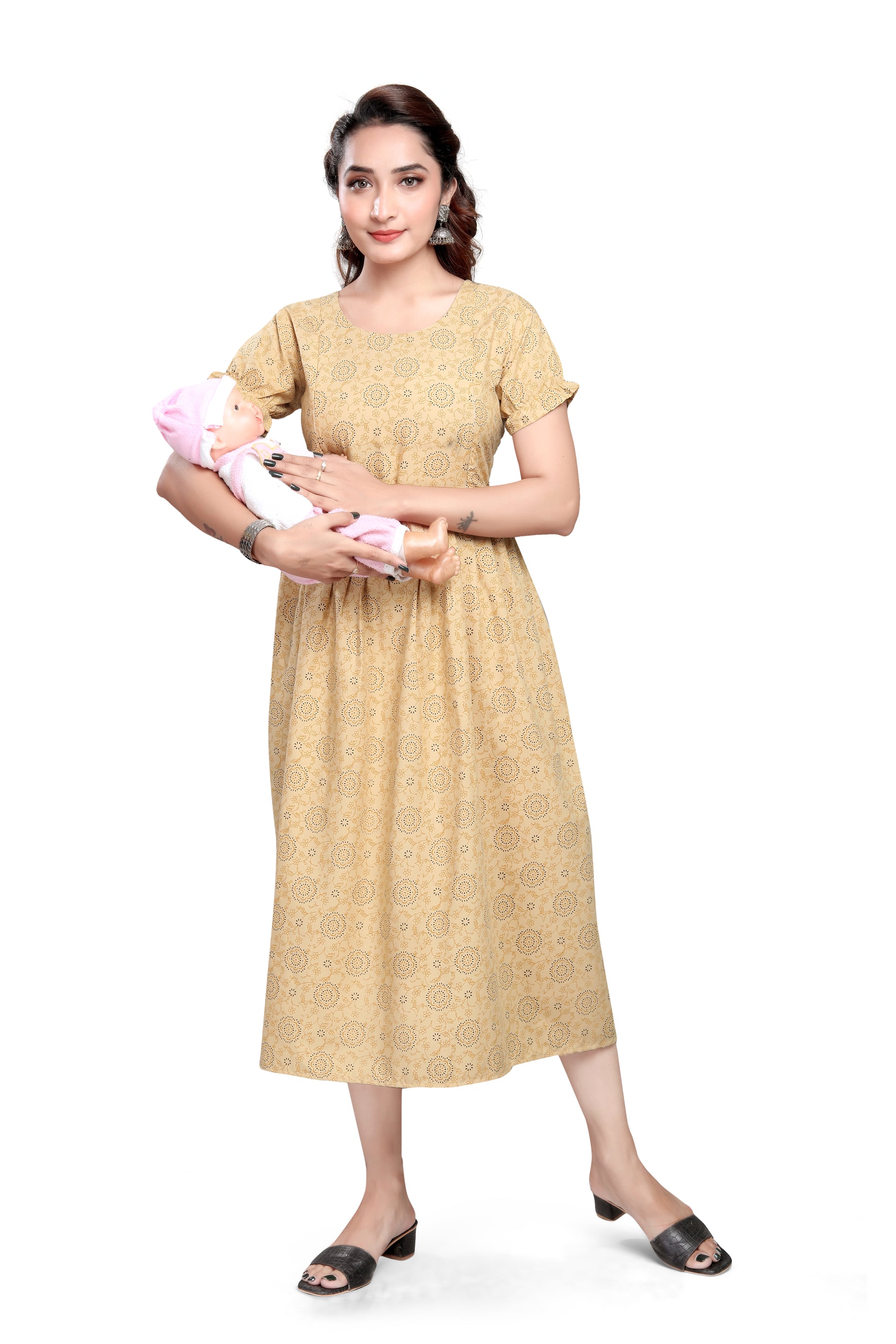 Each kurti has two concealed vertical zippers (approx. 9") on either side of the chest, allowing discreet and convenient nursing access.